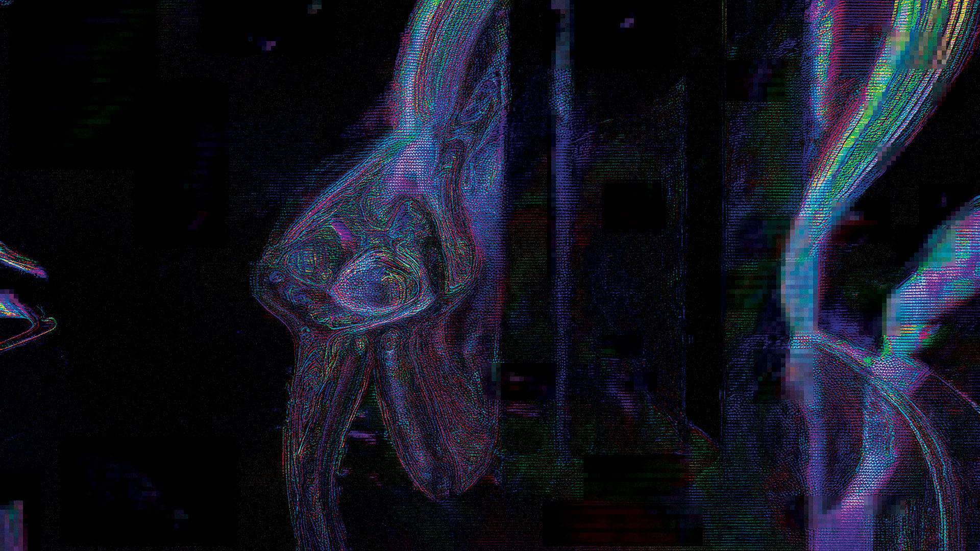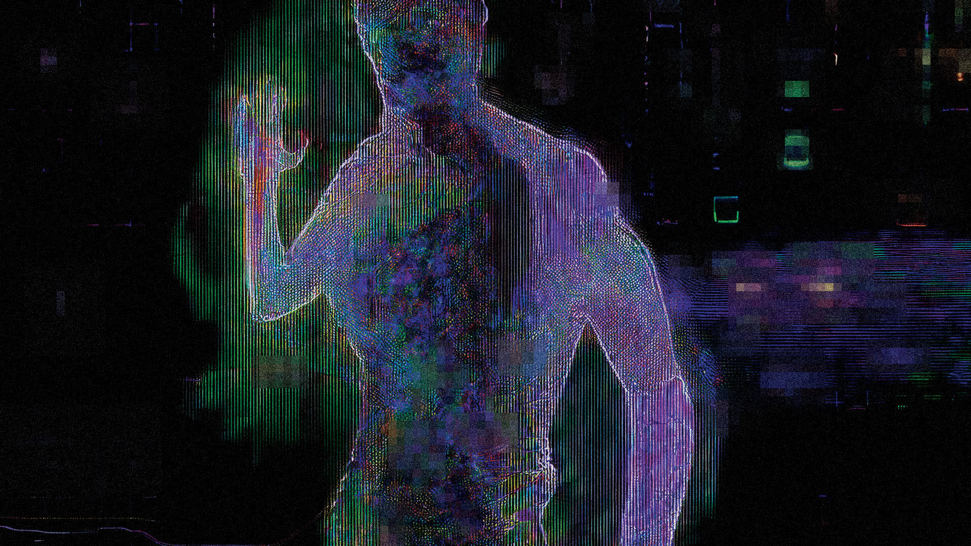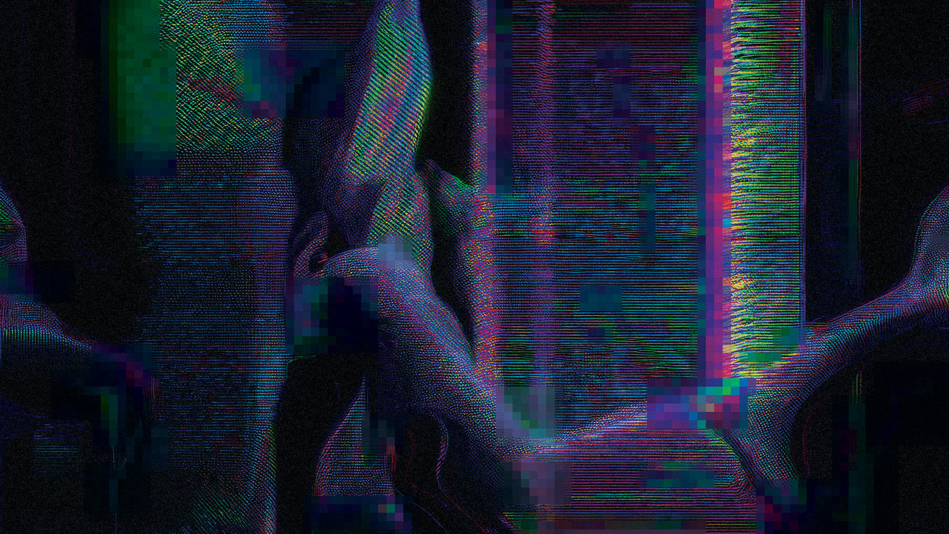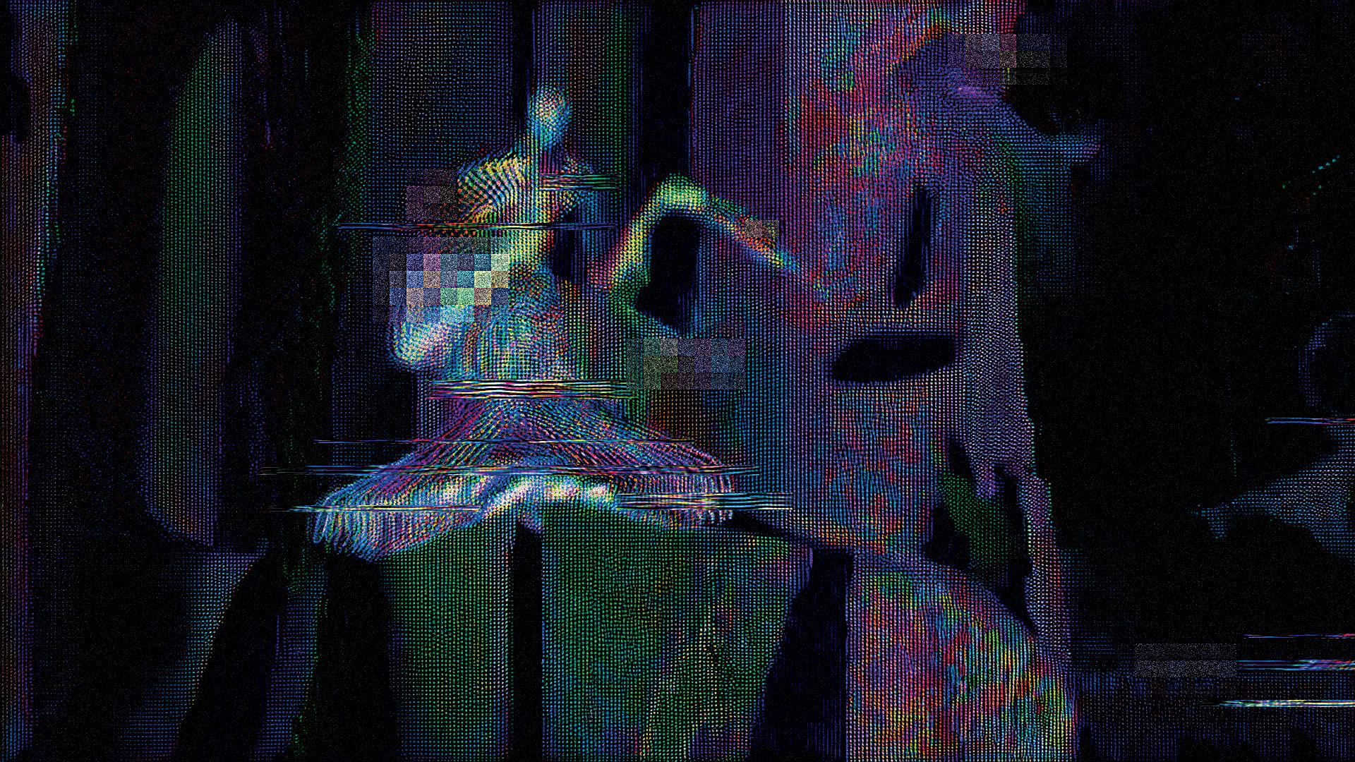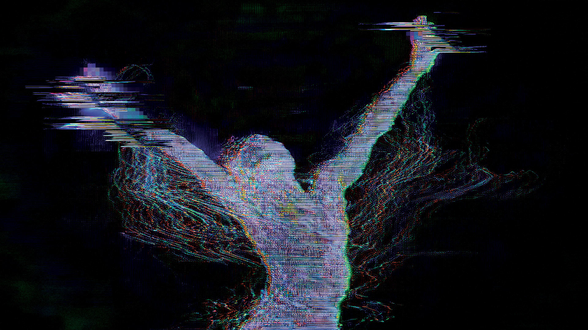 The graphics draw on the aesthetics of glitch art: digital interference, noise and deformations become a visual reflection of the impermanence of life, a story about copying and the creation of successive versions of oneself.