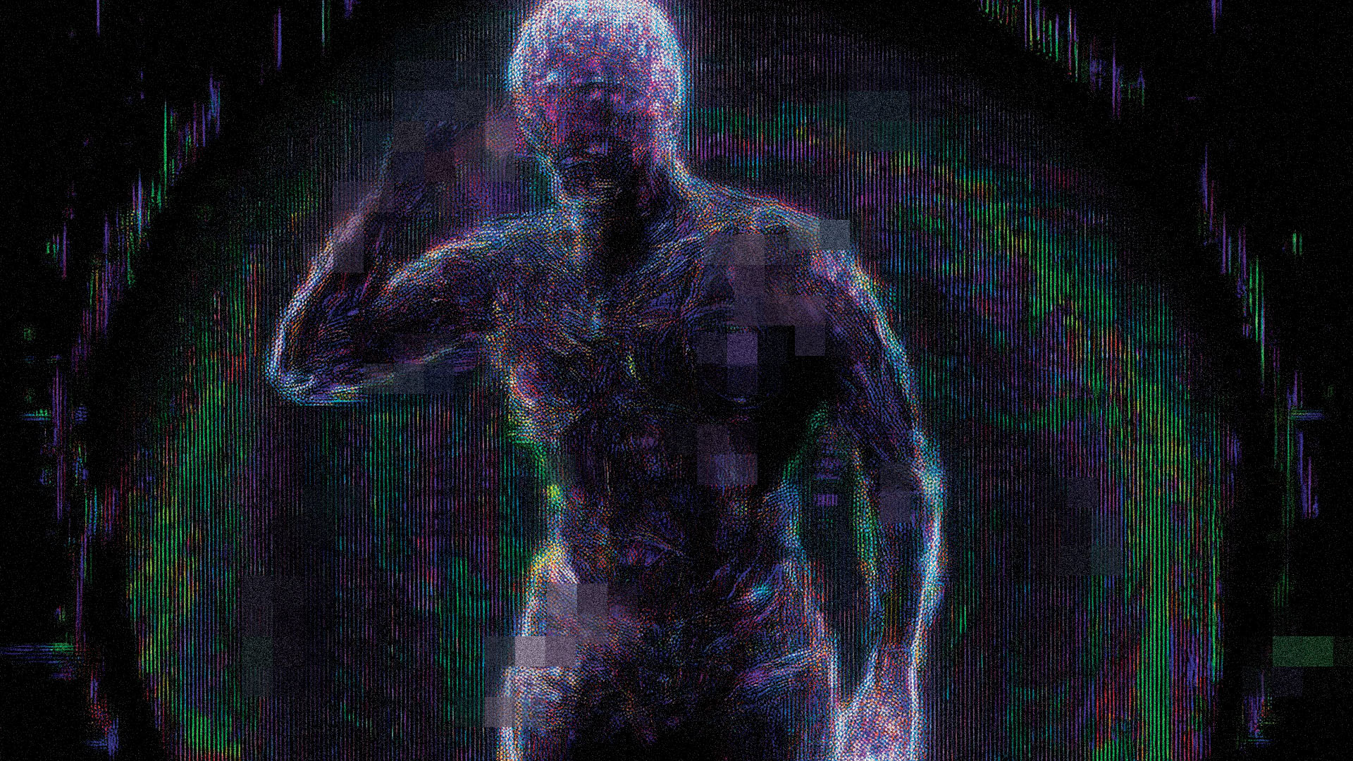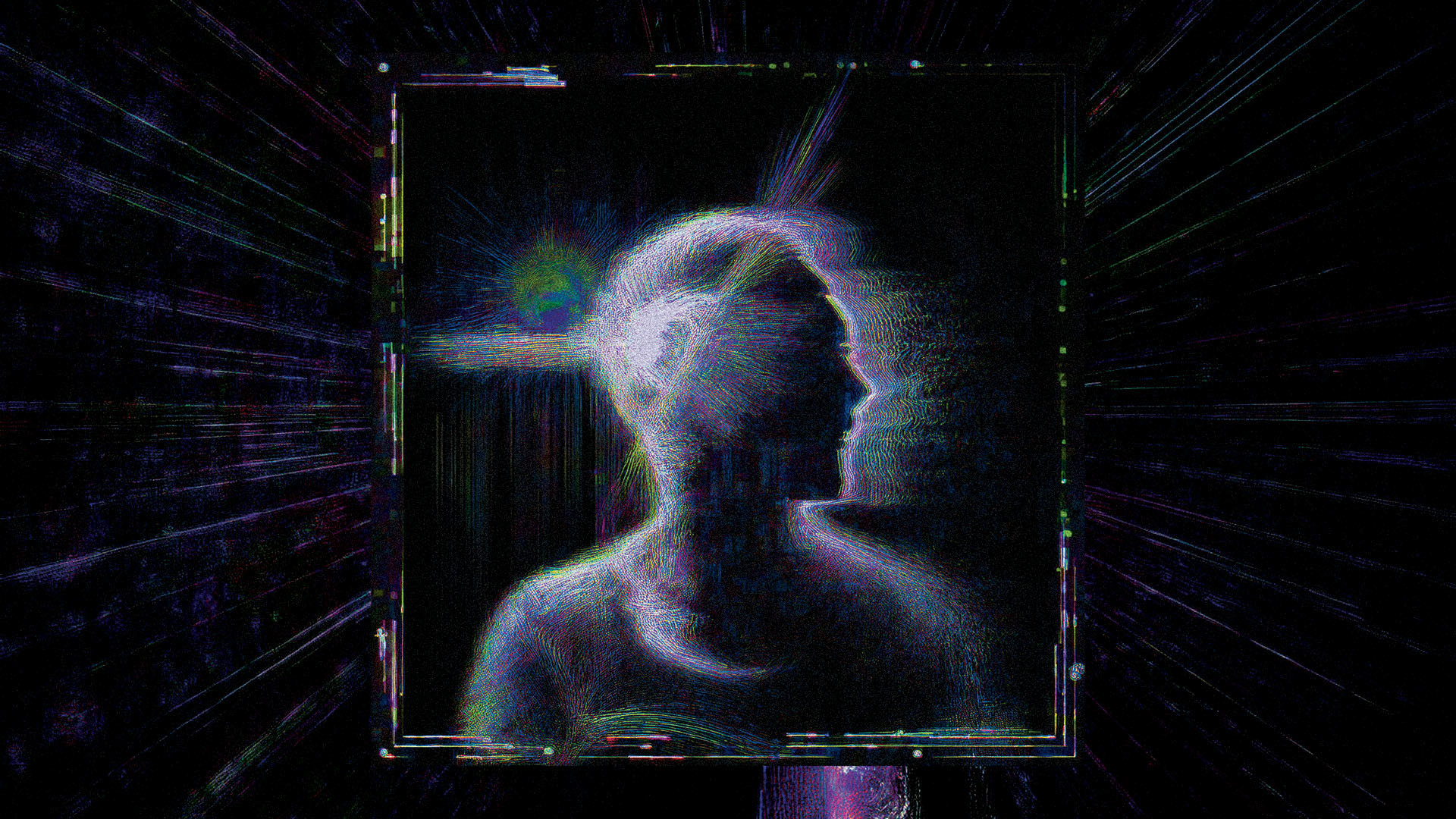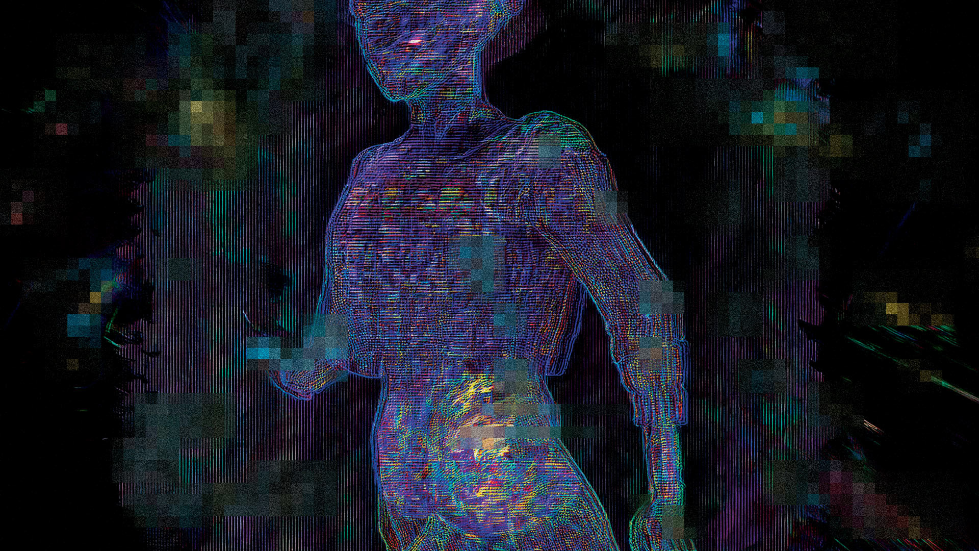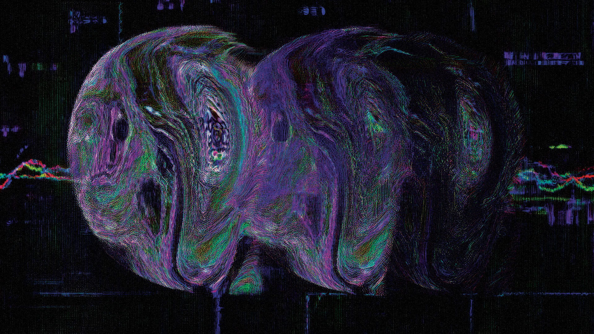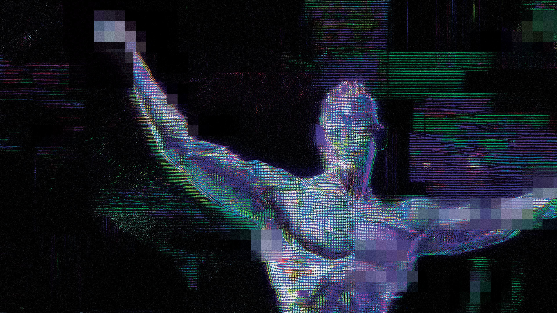 The graphics draw on the aesthetics of glitch art: digital interference, noise and deformations become a visual reflection of the impermanence of life, a story about copying and the creation of successive versions of oneself.