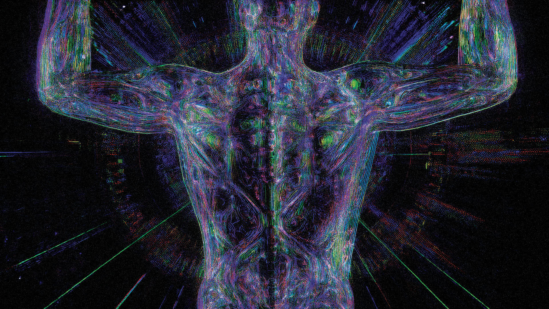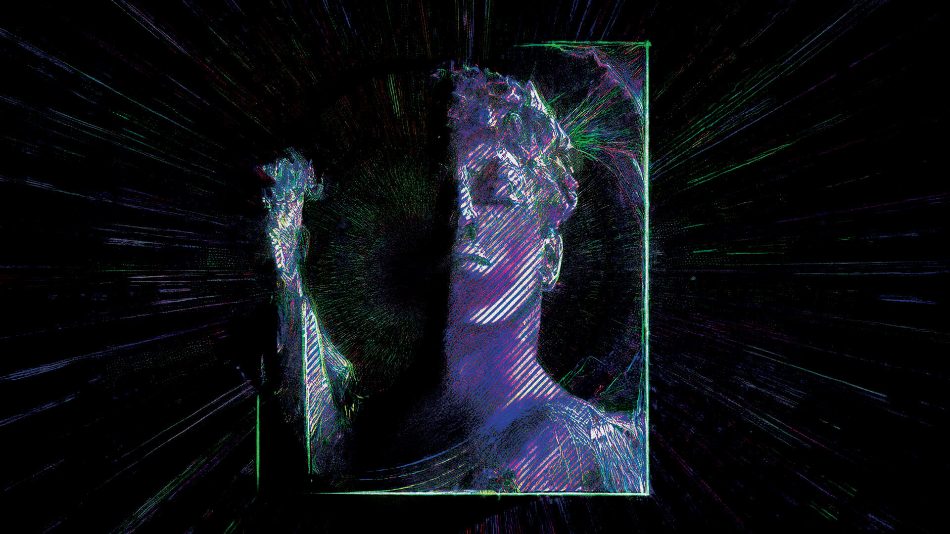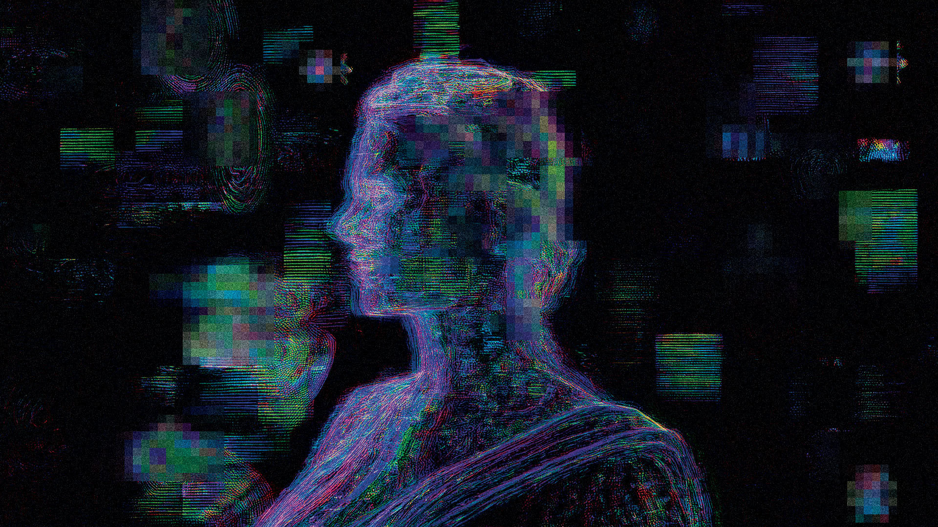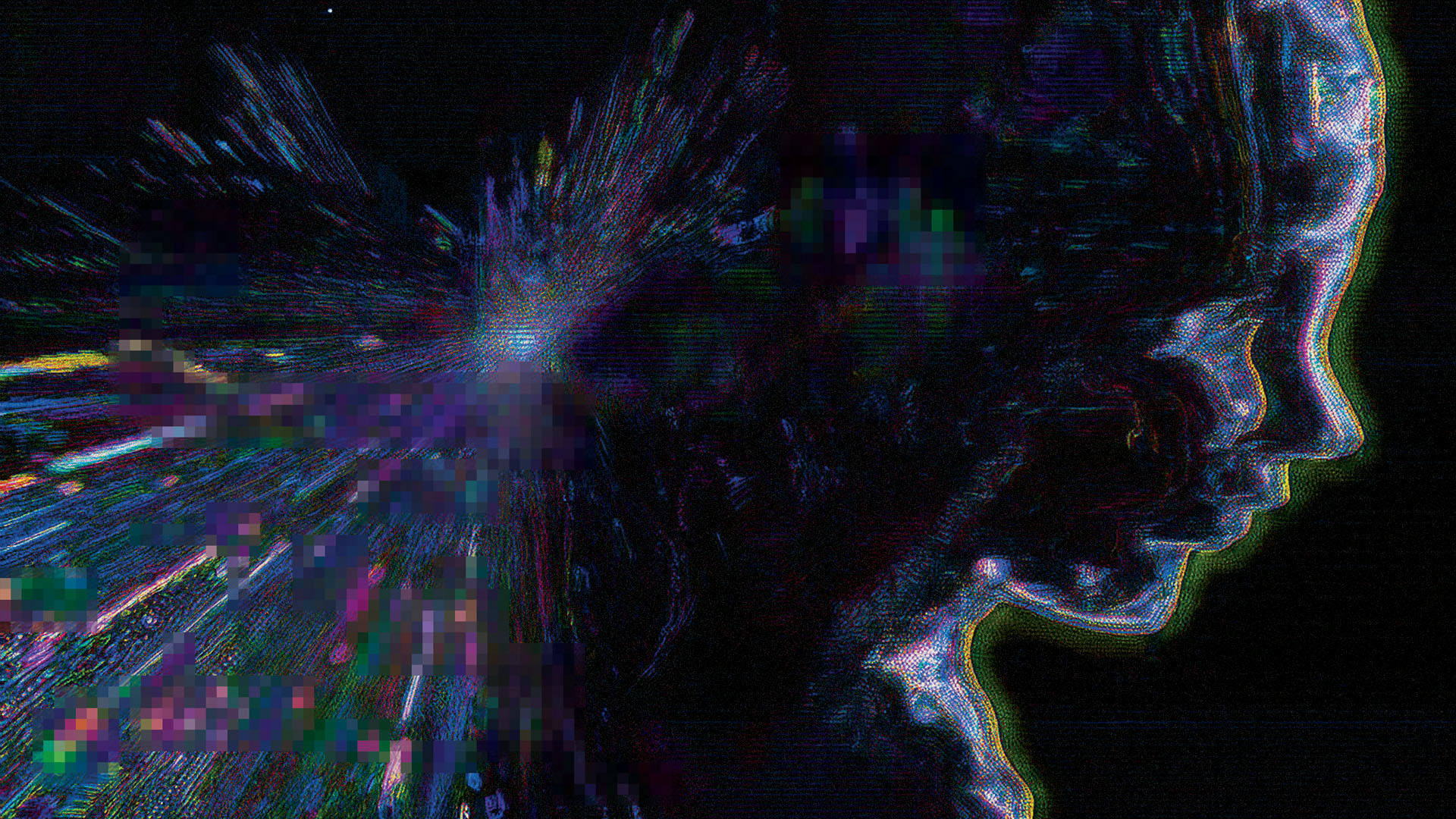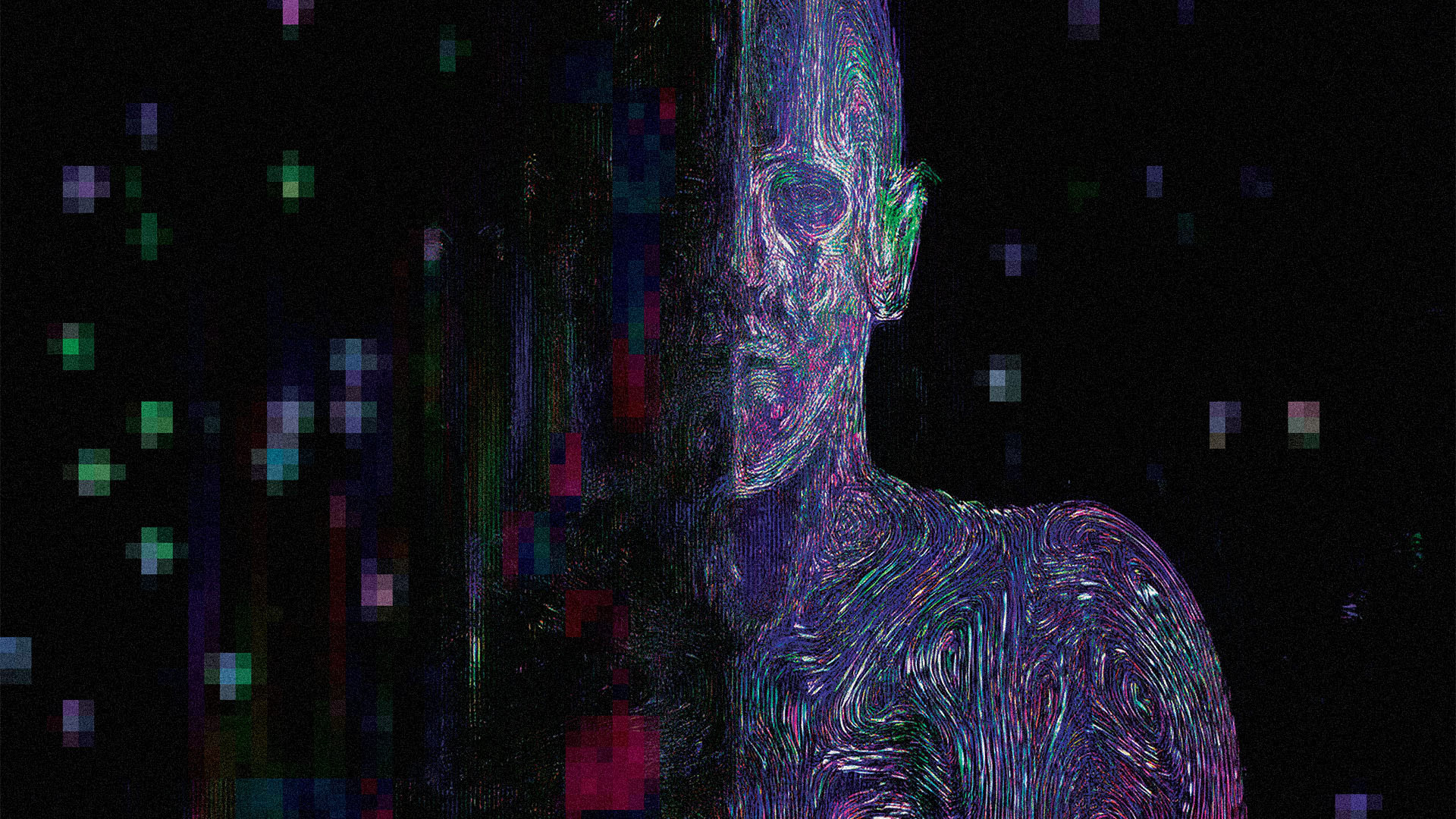The graphics draw on the aesthetics of glitch art: digital interference, noise and deformations become a visual reflection of the impermanence of life, a story about copying and the creation of successive versions of oneself.